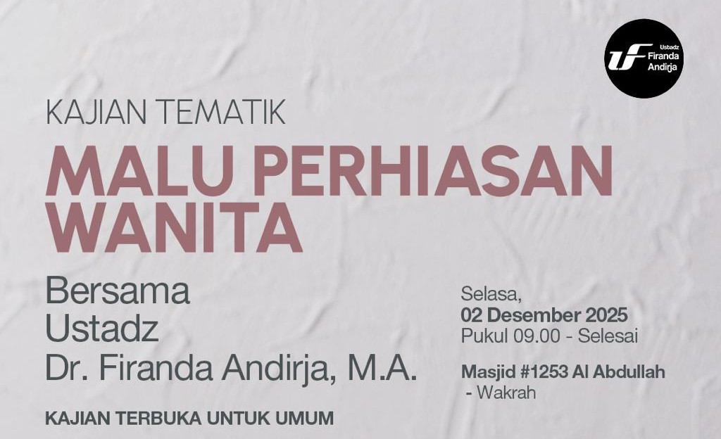 Ringkasan kajian ke-2 pada Safari Dakwah di Qatar yang disampaikan oleh Ustadz Dr. Firanda Andirja, M.A Hafidzahullah. Dengan judul Malu Perhiasan Wanita.