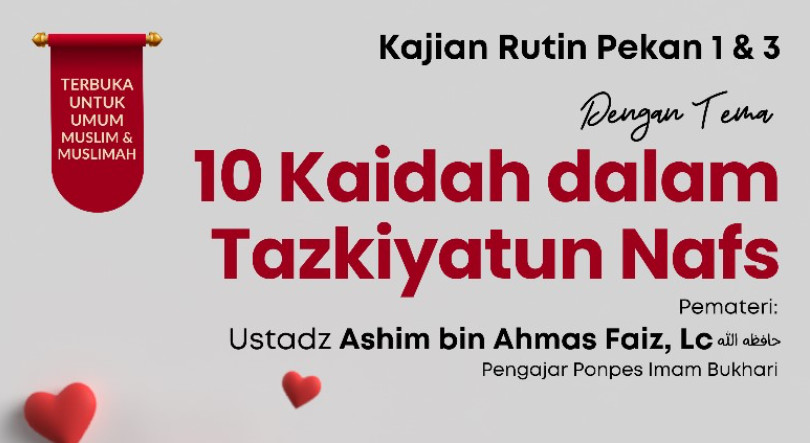 📚┃ Materi : 10 Kaidah dalam Tazkiyatun Nafs (Asyru qawaaida fi tazkiyatin nafsi) karya Syaikh ‘Abdurrazaq bin ‘Abdul Muhsin Al-Badr hafidzahullahu Ta’ala.